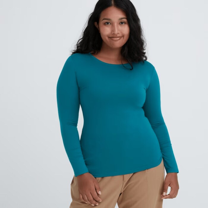 ウルトラストレッチ素材を使用した「ヒートテッククルーネックTシャツ」は、重ね着しても動きやすいのが特徴です。クルーネックなのでインナーとしてもコーデに合わせやすく、着回し力も抜群!リーズナブルな価格なのに、暖かさに加え、抗菌防臭、形状保持など機能性も充実したヒートテックです。