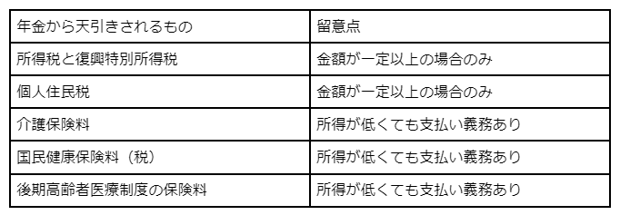それでは、年金からどんなものが天引きされるのでしょうか。