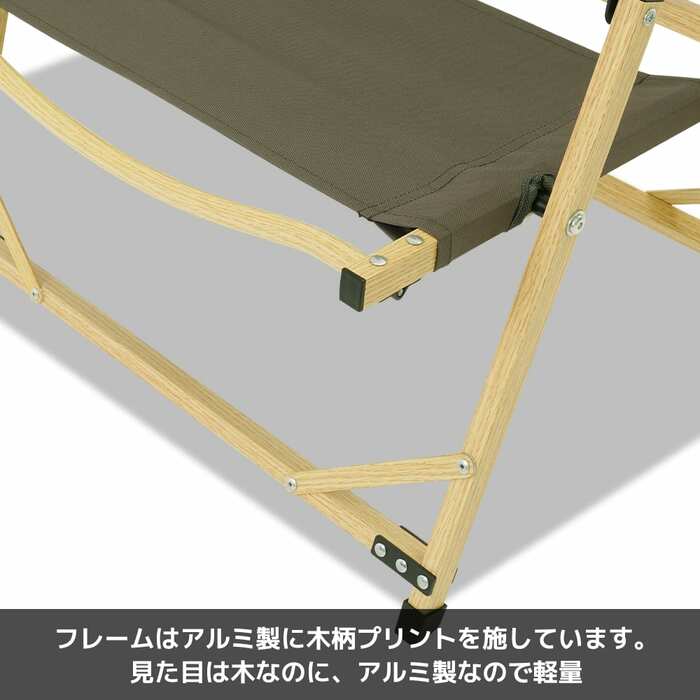 見た目は木製ですが、実はアルミ製フレームを仕様しているため軽量のモデルに。ぬくもりのある木を思わせる見た目でありながら、アルミ製フレームを採用したことで軽量化を実現しました。