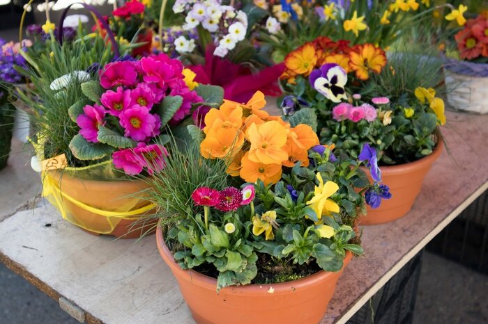小ぶりのビオラはわき役としても大いに活躍します。株のすき間を埋めるように植えたり、鉢の手前に植えてこんもりと咲かせたりするとよいでしょう。