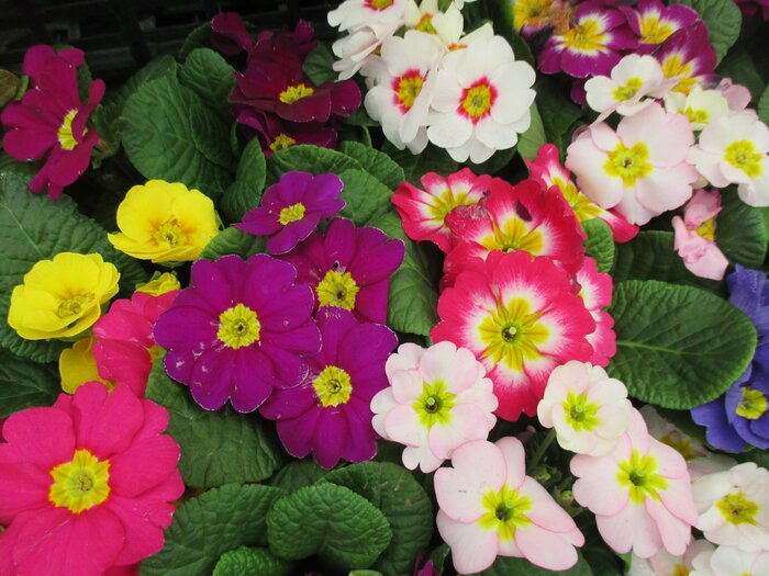プリムラはカラフルでポップな花姿が人気。花も草丈もコンパクトな「プリムラ・ジュリアン」や、花が大きめの「プリムラ・ポリアンサ」、双方の交配種など多くの品種があり、いずれも冬から春にかけて庭や花壇を彩ってくれます。