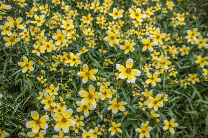 晩秋から早春にかけ、黄色やピンク、または白い花を咲かせるビデンス。花の形がコスモスに似ていることから「ウィンターコスモス」とも呼ばれています。