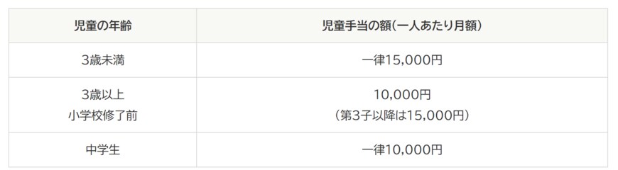 現行制度では中学生まで支給されて、子どもの年齢によって支給額が異なります。