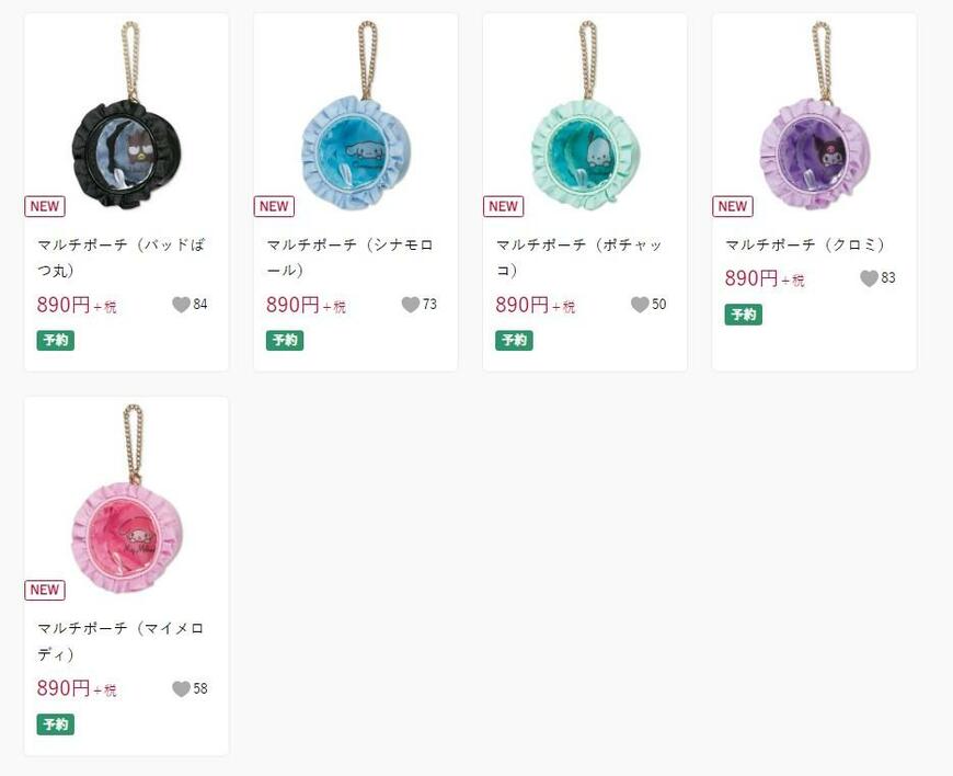 こちらもミニポシェットと同様に5種類展開となっています。バッドばつ丸・シナモロール・ポチャッコ・クロミ・マイメロディの5種類です。