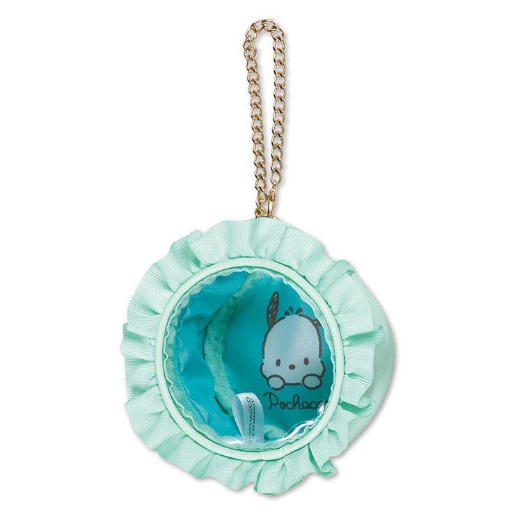 フリルがかわいらしい「サンリオマルチポーチ」です。窓の部分はクリア仕様になっているので、小さい人形や缶バッジを外側から見えるようにして持ち歩くことができます。