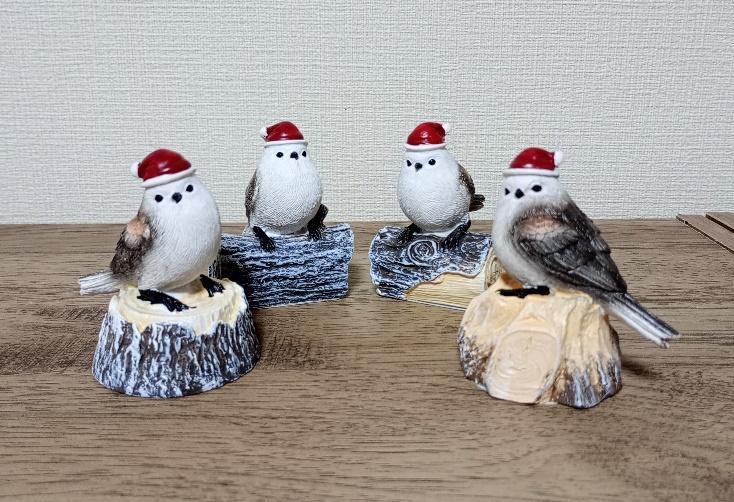 こちらは、リアルなシマエナガがかわいらしい置物「リトルフレンド シマエナガ クリスマスバージョン」です。写真のように2つのデザインを確認することができました。