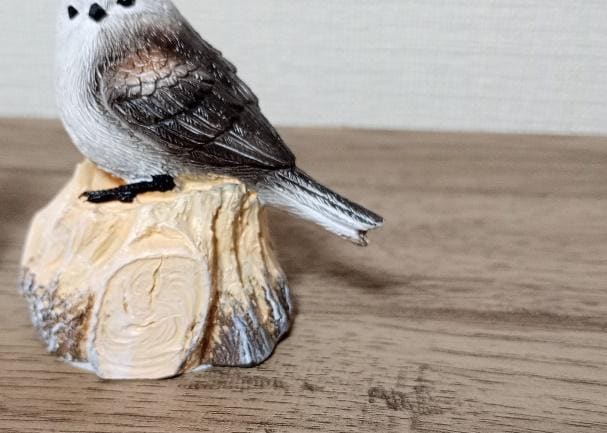 シマエナガの羽毛や尻尾の質感などもリアルに再現されている置物です。今にも羽を広げて飛んでいきそうです。