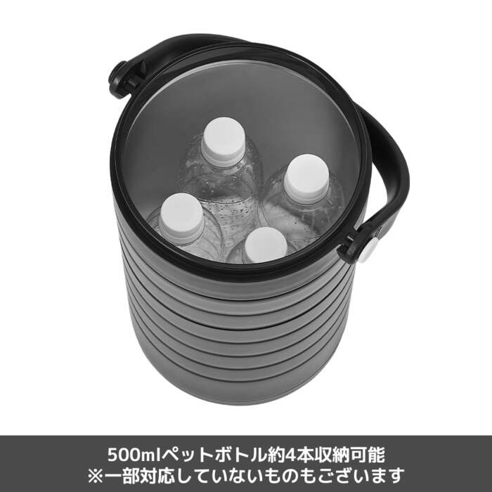 500mlのペットボトルが約4本収納できる真空コンテナ。保冷も保温もできるので、温かい飲み物を入れておいても冷めにくく、寒い屋外でも温かい飲み物が飲めます。