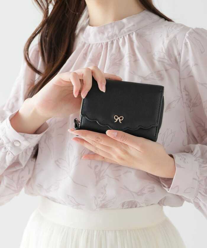 「スカラップウォレット」は、スカラップのカッティングとリボンモチーフが可愛いお財布。