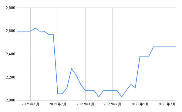 なお、全都市の小売価格の平均は2239円(2023年9月時点)、前年同月比では4%の伸びとなっています(いずれも小数点第一位を四捨五入)。