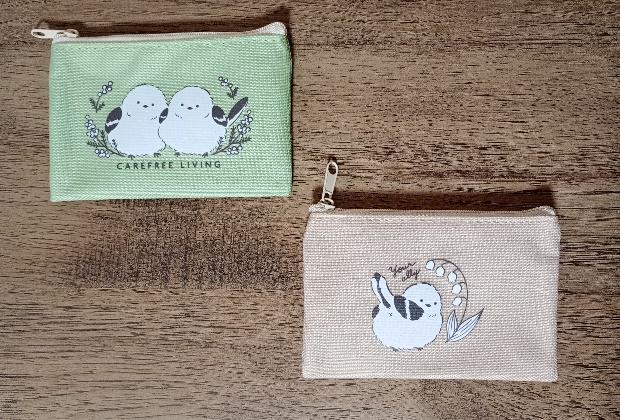 こちらがセリアで販売されている、シマエナガデザインのミニ財布「コインケースシマエナガ柄」です。写真のように、デザインは2種類あります。