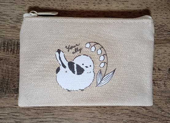 モカには、お尻を向けているシマエナガが一羽デザインされています。スズランの花もかわいらしいです。
