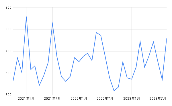 なお、全都市の小売価格の平均は639円(2023年9月時点)、前年同月比では2%の伸びとなっています(いずれも小数点第一位を四捨五入)。