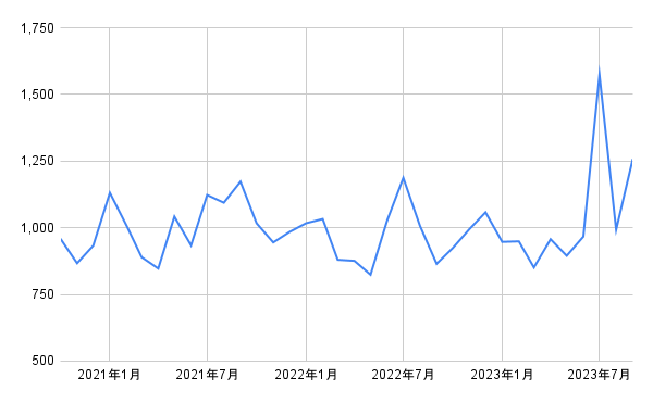 なお、全都市の小売価格の平均は893円(2023年9月時点)、前年同月比では6%の伸びとなっています(いずれも小数点第一位を四捨五入)。