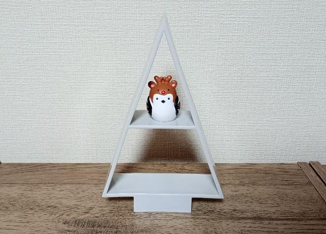 写真のように、お気に入りのフィギュアを並べて楽しむことができるアイテムです。推しのミニアクリルスタンドなどを飾って、クリスマス用の祭壇作りに活用してみてもいいかもしれませんね。