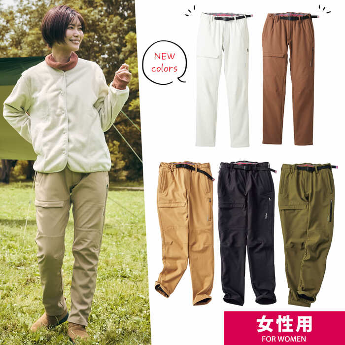 汚れが取れやすい耐久撥水の素材が使われており、アウトドアにおすすめのクライミングパンツ。膝の曲げ伸ばしがしやすく、屋外スポーツ時にもぴったりです。ウエストゴムで履きやすく、ストレッチの効いた素材で動きやすくなっています。