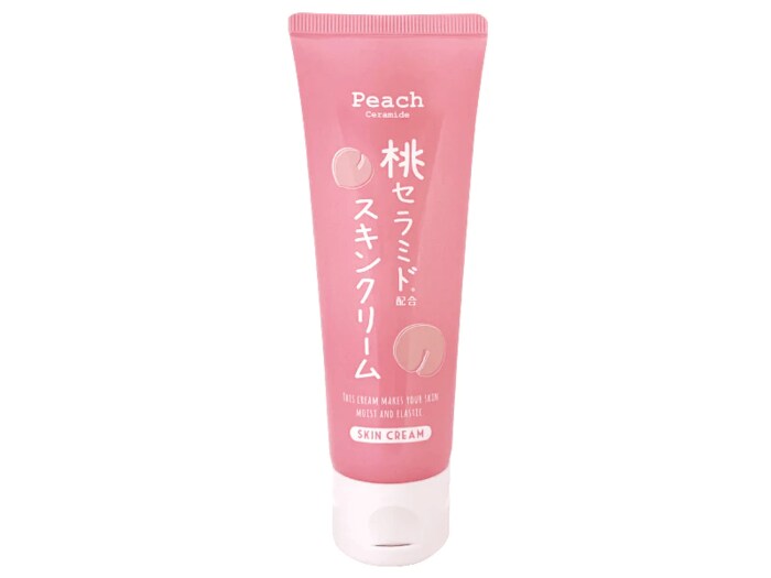 注目を集める「桃セラミド」シリーズの、スキンクリームです。「フィトステリルグルコシド」「グルコシルセラミド」という成分が、肌にうるおいを与えてくれます。桃のイラストが描かれたピンク色のパッケージもかわいらしく、思わず手に取りたくなる商品です。