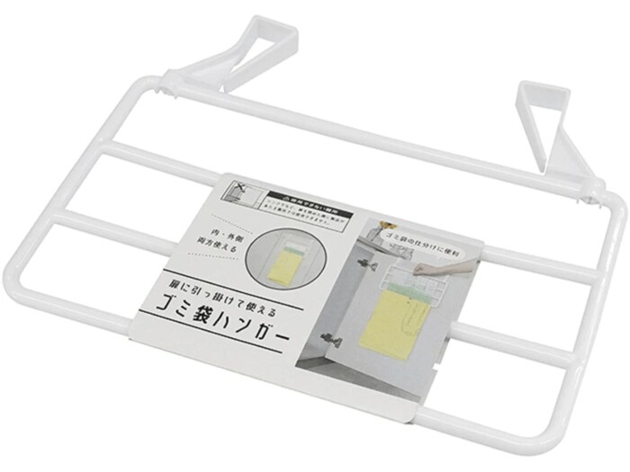 キッチンのシンク下やコンロ下の収納扉などに引っ掛けて、ゴミ袋を収納できる便利グッズです。扉の外側に引っ掛けて使えばサッと取り出しやすく、内側に引っ掛ければ隠す収納として活躍します。袋の種類や大小によって分けて収納できるのも使いやすいポイントです。