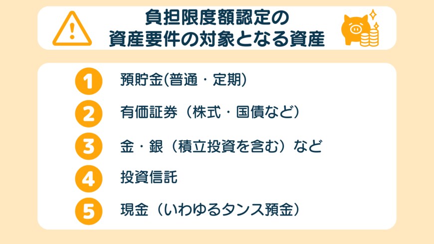 負担限度額認定の資産要件の対象となる資産は、以下の通りです(【図表3】)。