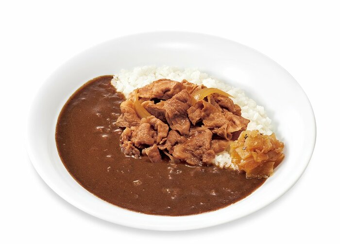 すき家の牛カレーは、スパイスを20種類以上使ったこだわりのメニューです。スパイスの香りに加え、甘辛い牛肉が食欲をそそります。