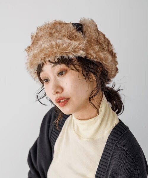 アソートフライトキャップは、毎年人気があるアイテム。柔らかいフェイクファーを使用しており、見た目もかわいく暖かさも抜群です。ボリューム感が程よく、帽子だけ浮いてしまうこともありません。ユニセックスなので、パートナーとお揃いで使うのもおすすめです。