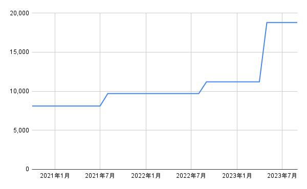 なお、全都市の価格の平均は1万7510円(2023年9月時点)、前年同月比では6%の伸びとなっています(いずれも小数点第一位を四捨五入)。