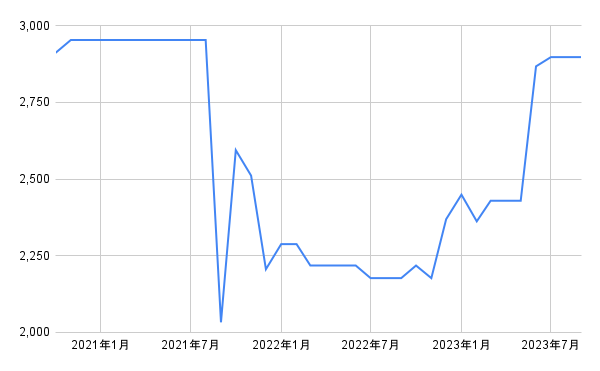なお、全都市の小売価格の平均は2377円(2023年9月時点)、前年同月比では1%の伸びとなっています(いずれも小数点第一位を四捨五入)。