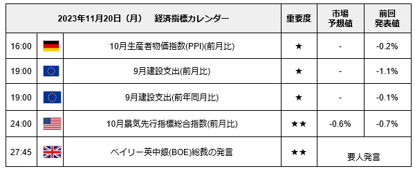 2023年11月20日(月)経済指標カレンダー