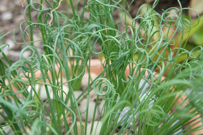 クルクルとカールした葉がユニークなアルブカ・スピラリス・フリズルシズル。別名「ナンジャコレ」「ケープバルブ」とも呼ばれています。