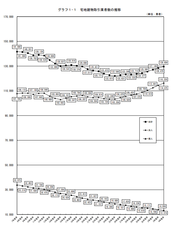 不動産適正取引推進機構のデータによると、2022年度の不動産会社の数は約12万9604社あり、9年連続で増加しています。