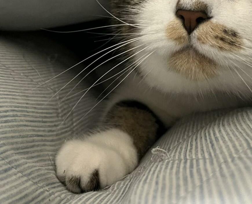 茶色いお鼻や真っ白なお腹も愛らしい!猫ちゃんについてインタビュー