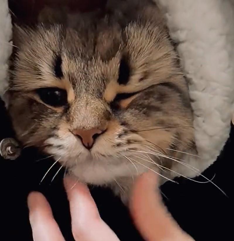 ヤマネコくんは、撫でられてウトウト顔を浮かべたり、飼い主さんに視線を送ったりと、毛布の中で安心しきった様子を見せています。幸せなワンシーンにこちらまで癒される瞬間ですね。