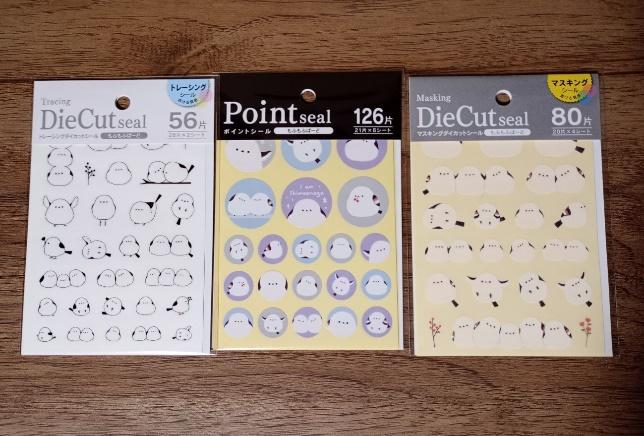 こちらがセリアで販売されているシマエナガシールです。写真のように3種類確認することができました。以下で1つずつ詳しくご紹介していきます。