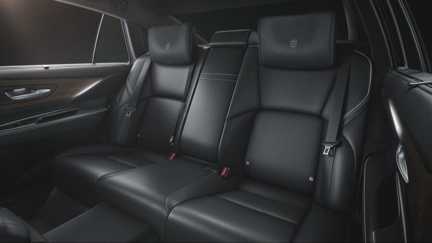 後席は、ショーファーニーズに応えるべく足元にゆとりを持たせています。3mに設定したホイールベースを活かし足抜きしやすいスムーズな乗り降りを実現しています。