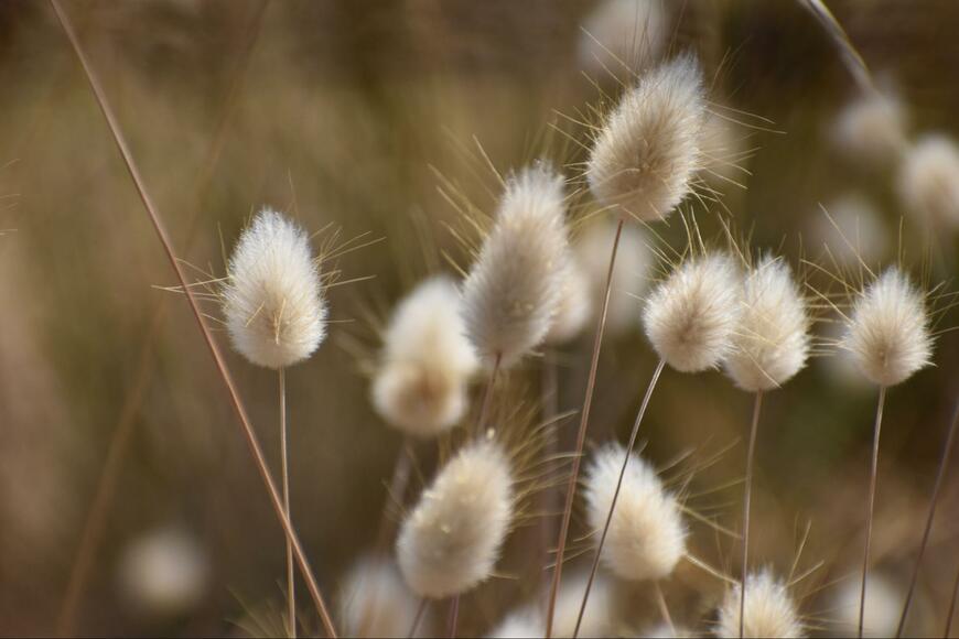 ラグラスは小さな円錐形の穂花が可憐。「バニーテール」という別名で呼ばれることもあり、白くコロンとした姿がまさにウサギの尻尾のよう。茎が細く風に吹かれてユラユラ揺れる姿に癒やされます。※参考価格:200~400円前後(3号ポット苗)