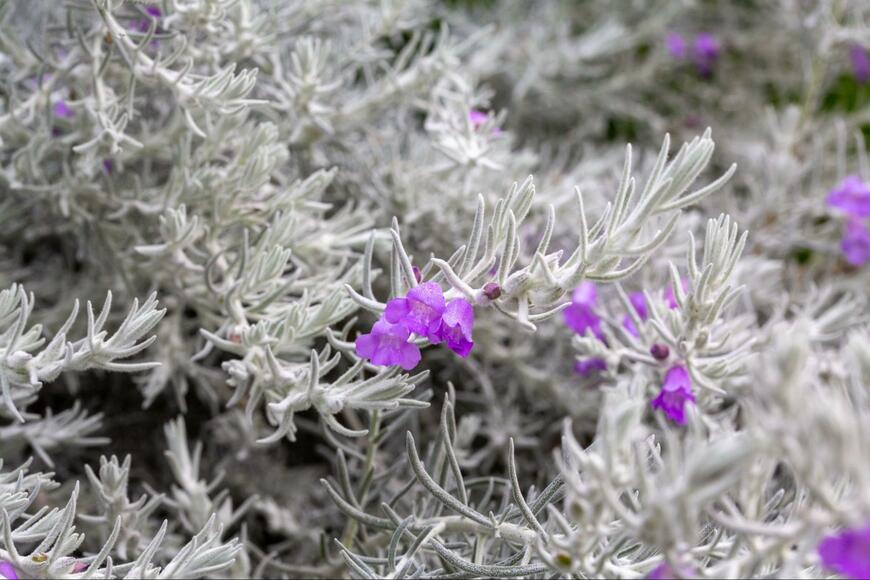 エレモフィラは「ホワイトツリー」と呼ばれることもあるオーストラリア原産の多年草。1~6月にかけての長い期間、紫色のカワイイ花を咲かせます。