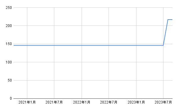 なお、全都市の小売価格の平均は211円(2023年9月時点)、前年同月比では+0%となっています(いずれも小数点第一位を四捨五入)。