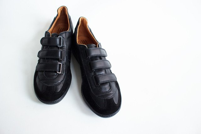 服好きにはお馴染み、ドイツ軍が履いていた「ジャーマントレーナー」をモダンに昇華したスニーカーです。デザイン自体は元ネタを踏襲しながら、“トレーニングシューズ”にあえてイタリア産の高級レザーをアッパーに用いているのが特徴。
