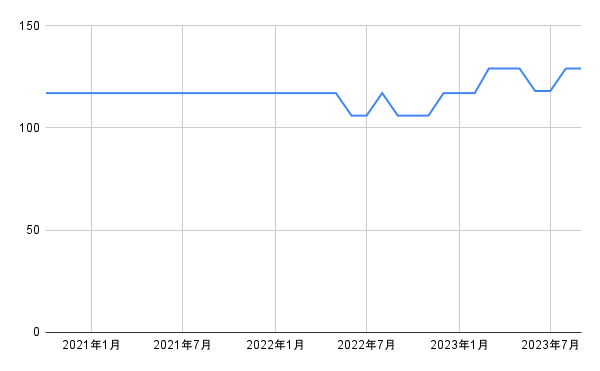 なお、全都市の小売価格の平均は148円(2023年9月時点)、前年同月比では+0%となっています(いずれも小数点第一位を四捨五入)。