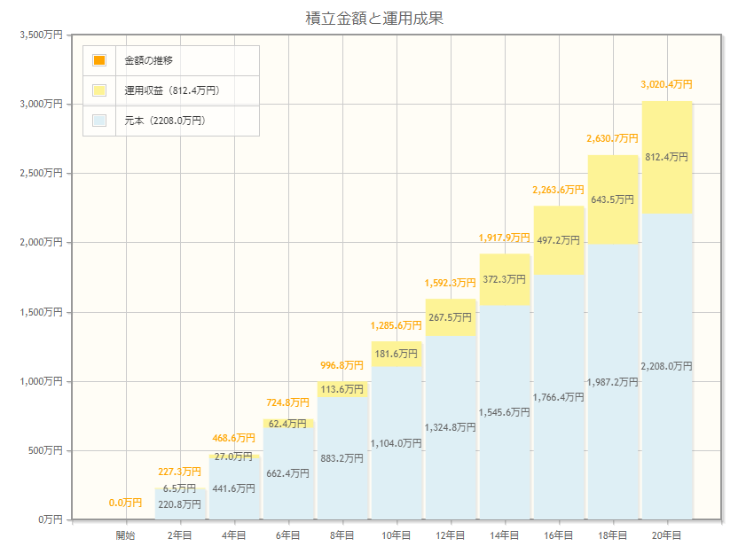 内訳は、投資元本が2208万円、運用益が812万4000円です。
