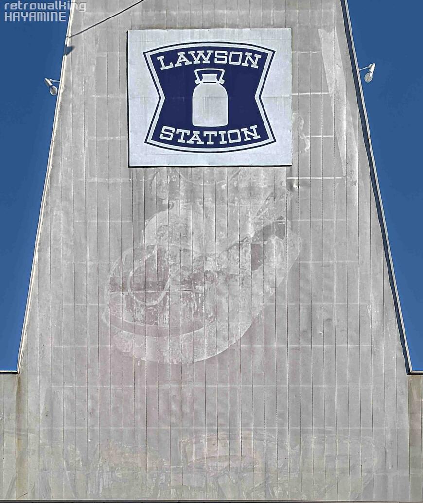 建物を正面から見ると、ローソンのロゴの下にはうっすらと文字が見えますね。ローソンの前世は、おもちゃのハローマックだったようです。時の流れを感じる光景がグッときますね。