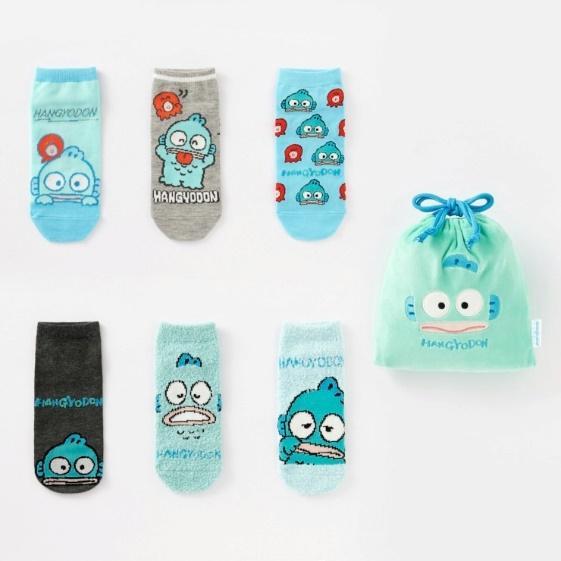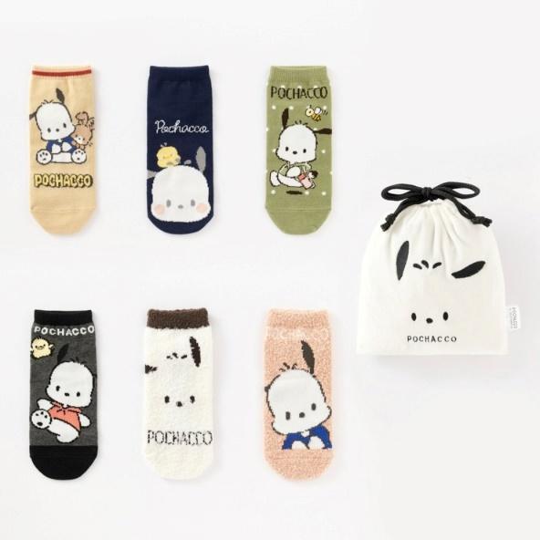 サンリオデザインの「くるぶし丈ソックス4足」と「ふわふわソックス2足」が「巾着ポーチ」に入ったセットで、税別1000円で購入可能です。