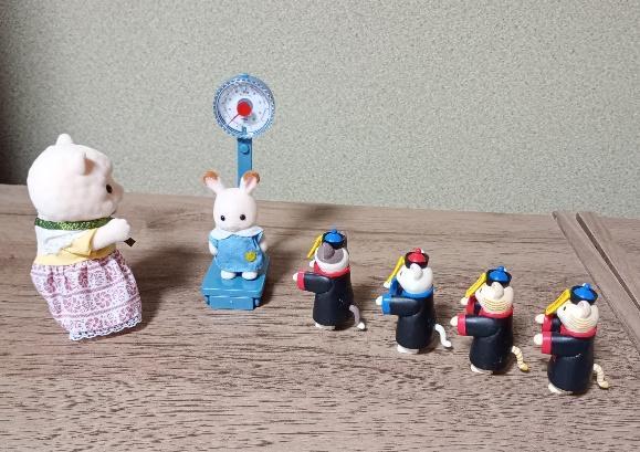 たくさんのミニチュア人形を並べて、身体測定ごっこを楽しむこともできます。レトロ感ある学校を再現することもできそうです。