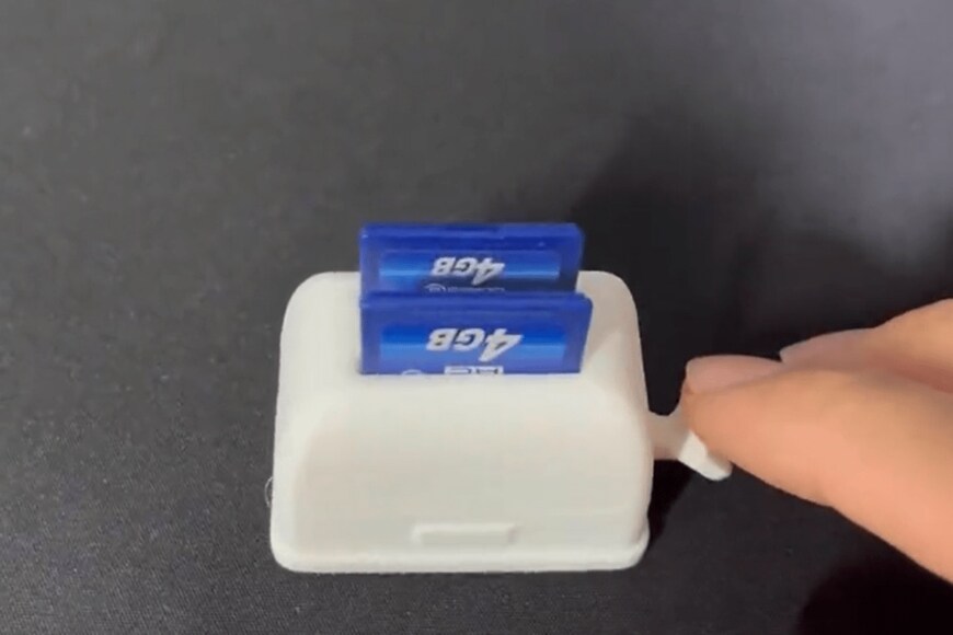 「最近SDカードの置き場所に困っていたので3Dプリンターでトースター型のSDカードホルダーを印刷してみました。レバーを下ろすとSDカードが出てきて取り出せます。ミニチュアで可愛いです」というコメントとともに投稿されたのは、1本の動画でした。