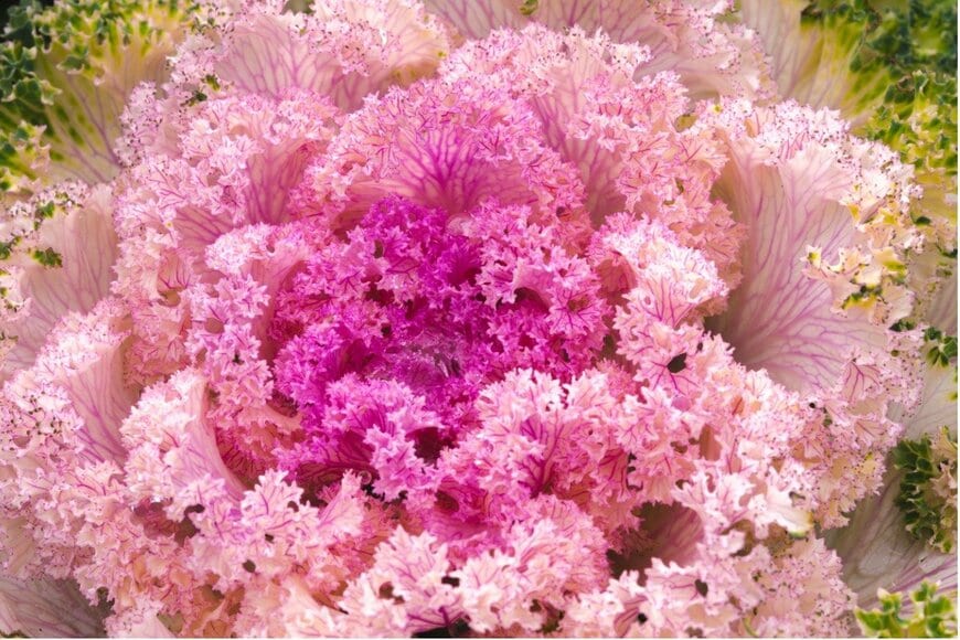 冬の定番ハボタンが主役の寄せ植えです。ハボタンは大きさや種類の違う数種を入れると、華やかで見た目の美しい寄せ植えになります。