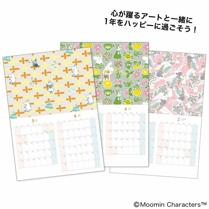 ムーミンとその仲間たちの、さまざまな絵柄が楽しめるカレンダーです。心が躍るアートと一緒に1年をハッピーに過ごしてみてくださいね。