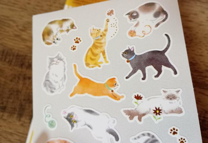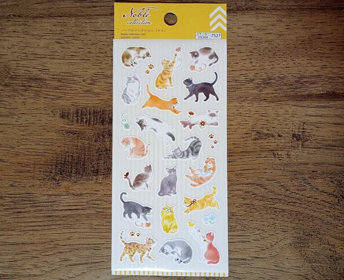 こちらは19匹の猫がデザインされているシール「ノーブルコレクション(猫)」です。猫の肉球や毛糸玉といったシールもセットになっています。
