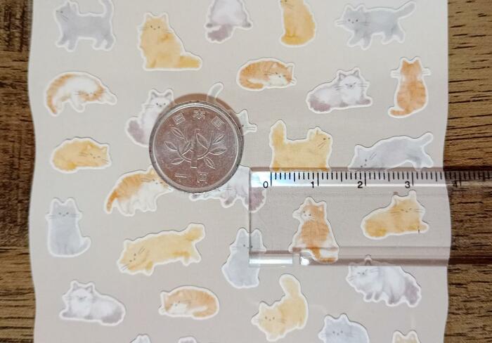 シール1枚のサイズは、1cm強です。小さいサイズのシールです。スケジュール帳のカレンダー部分や予定部分に貼り付けて使うことができそうです。シンプルな手帳もかわいくなりそうです。