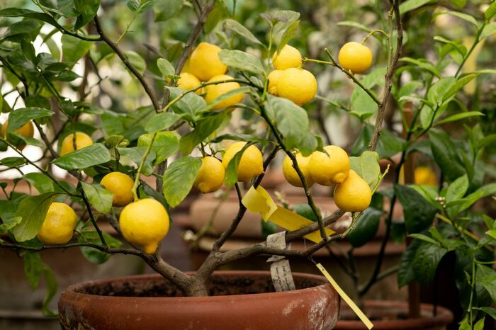 実付き苗として販売されている果樹はある程度の大きさがあり、剪定も施されて樹形が見映えよく整っています。色とりどりの実がなった木は庭のワンポイントに。
