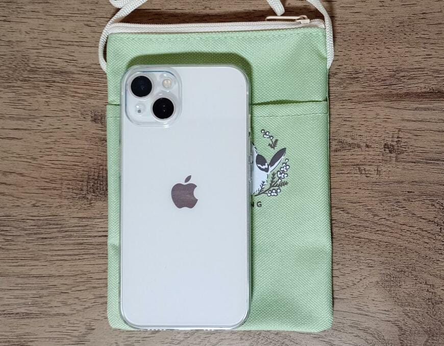 シマエナガ柄のショルダーバッグのサイズは、17cm×13cmです。6インチ程度のスマホを余裕をもって収納できるサイズ感のアイテムです。